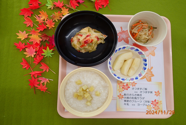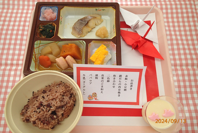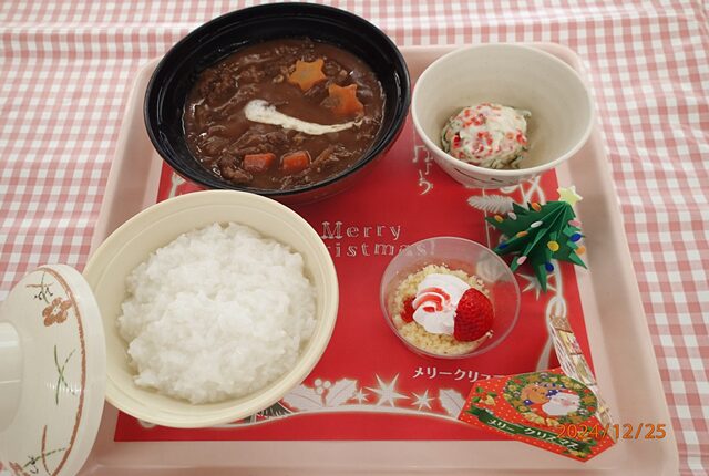 フォトギャラリー 2025年01月10日 ❮ ❯ おしるこ 令和7年1月10日(金)に行った「おしるこ」です。 松の内も終わって明日は鏡開きです。お供えの鏡餅は美味しくいただきます。患者さまには、お餅に見立てた白玉麩を温かいおしるこに添えて。 2025年01月01日 ❮ ❯ お正月行事食 令和7年1月1日(水)元日の行事食です。 あけましておめでとうございますお弁当箱には患者様のお名前を入れた手作りの年賀状カードを添えてハレの日をお祝いしました 2024年12月25日 ❮ ❯ クリスマスランチ 令和6年12月25日(水)に行った「クリスマスランチ」です。 じっくり煮込んだビーフシチューはサンタさんにも分けてあげたいおいしさ。 いちごのケーキはクリスマス気分を盛り上げてくれます。 merryX’mas & Happy New Year 2024年11月28日 ❮ ❯ 紅葉御膳 令和6年11月28日(木)に行った「紅葉御膳」です。 季節は秋から冬へと。 今年は秋があっという間に過ぎ去ってしまったように思います。 お膳の中だけでも鮮やかな紅葉を楽しんでいただけたらと思います。 2024年10月29日 ❮ ❯ 行楽弁当 令和6年10月29日(木)に行った「行楽弁当」です。 キンモクセイの甘い香りに誘われてお弁当と一緒にお出かけしたくなります。 おにぎりの中身は何がいいかしら? 江ノ電に乗って秋の鎌倉散策なんていかがですか? 2024年09月17日 ❮ ❯ お月見和菓子 令和6年9月17日(火)に行った「お月見和菓子」です。 水ようかんの夜空にまん丸のお芋のお月様。 牛乳寒天のウサギさんがちょこんとお座り。 折り紙のお月見団子とススキが一層気分を盛り上げてくれています。 2024年09月13日 ❮ ❯ 敬老弁当 令和6年9月13日(金)に行った「敬老弁当」です。 昔から赤い色は邪気を払うといわれています。 お赤飯はハレの日のお食事の代表格。 もち米を使用していない“柔らか赤飯”ですが、皆さま喜んで召し上がってくださいました。 2024年07月05日 ❮ ❯ 七夕ゼリー 令和6年7月5日(金)の「七夕ゼリー」です。 平塚の七夕祭りも賑やかに始まりました。 当院でも鮮やかなブルーの空に生クリームの天の川 黄桃寒天のふたつのお星さまは、再会を喜んでいるようです。 2024年06月10日 ❮ ❯ あじさい和菓子 令和6年6月10日(月)に行った「あじさい和菓子」です。 梅雨入りはまだですが、庭の紫陽花たちは色とりどりに咲き誇っています。 お皿の中には、白餡にぶどうゼリーをまとった甘いあじさいが咲きました。 2024年05月13日 ❮ ❯ 新緑御膳 令和6年5月13日(月)に行った「新緑御膳」です。 当日はあいにくの雨模様でしたが、雨に濡れた新緑も、また瑞々しくてステキです。 当院の木々も、恵の雨を受けながら一気に芽吹いています。 1 2 3 4